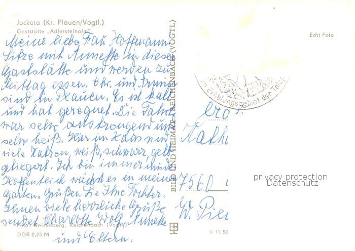 73754916 alte Postkarte Jocketa Gaststaette Adlersteinalm postalisch gelaufen Erhaltung siehe scans [FriedD77] KatCode: 11110014178490