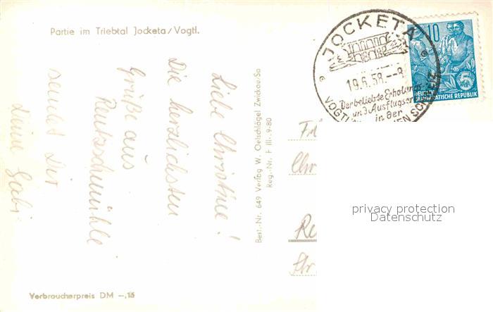 72728843 alte Postkarte Jocketa Partie im Triebtal postalisch gelaufen Erhaltung siehe scans [FriedD77] KatCode: 11110014178490