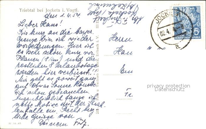 72434037 alte Postkarte Jocketa Triebtal postalisch gelaufen Erhaltung siehe scans KatCode: 11110014178490
