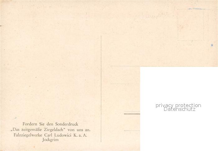 73671515 Jockgrim Falzziegeldach von Falzziegelwerke Carl Ludowici postalisch nicht gelaufen Erhaltung siehe scans [WerneD78] KatCode: 11110007334012