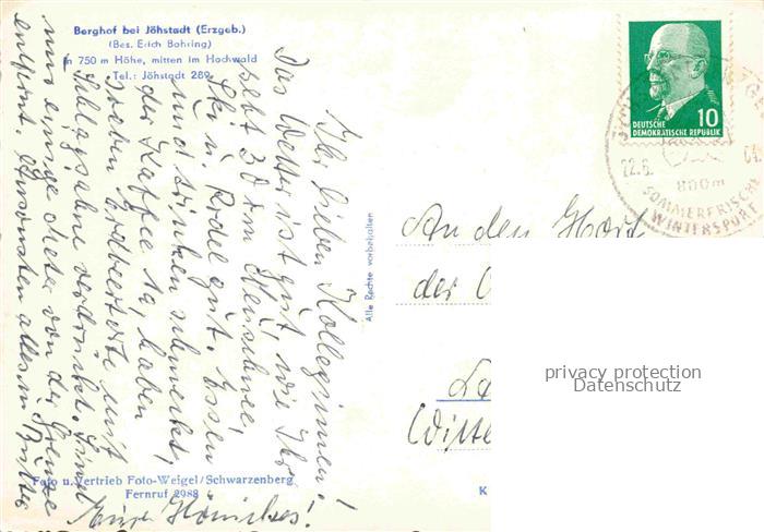 74109681 alte Postkarte Joehstadt Berghof Gasthaus postalisch gelaufen Erhaltung siehe scans [WerneD78] KatCode: 11110014171190