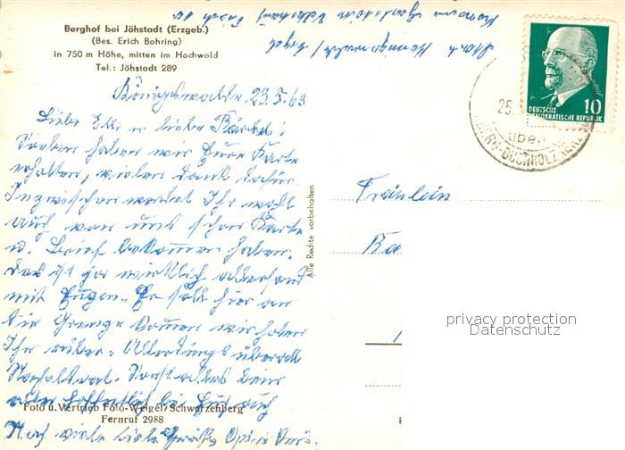 73081931 alte Postkarte Joehstadt Berghof postalisch gelaufen Erhaltung siehe scans [FriedD77] KatCode: 11110014171190