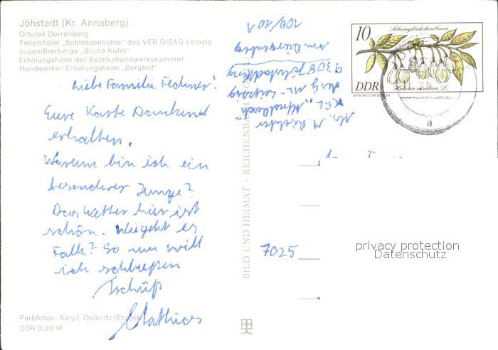 72069140 alte Postkarte Joehstadt Duerrenberg Ferienheim Schloesselmuehle postalisch gelaufen Erhaltung siehe scans KatCode: 11110014171190