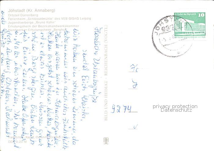 72114213 alte Postkarte Joehstadt Duerrenberg postalisch gelaufen Erhaltung siehe scans KatCode: 11110014171190