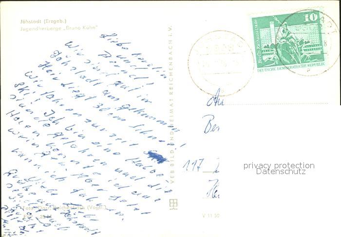 72055261 alte Postkarte Joehstadt Jugendherberge Bruno Kuehn postalisch gelaufen Erhaltung siehe scans KatCode: 11110014171190