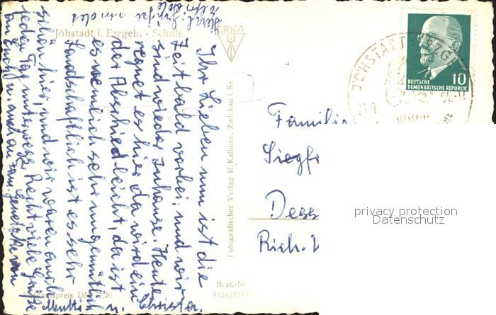 72028639 alte Postkarte Joehstadt Schule postalisch gelaufen Erhaltung siehe scans KatCode: 11110014171190