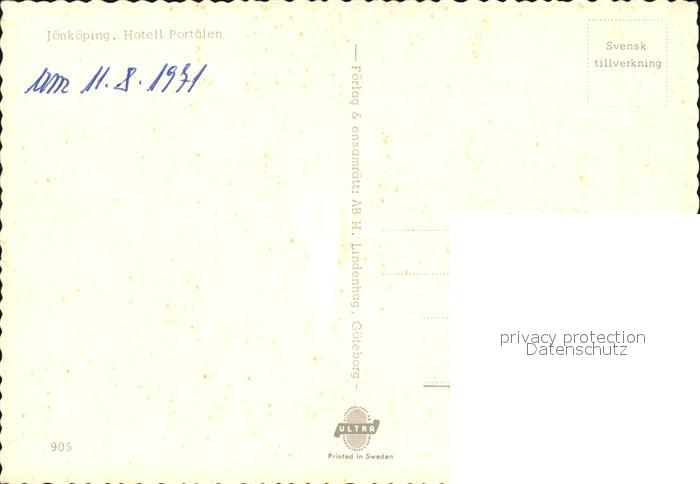 Joenkoeping Hotel Portalen postalisch nicht gelaufen Erhaltung siehe scans
