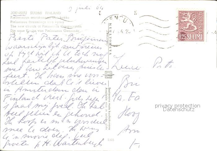 old postcard Joensuu Finnland Kirche postalisch gelaufen Erhaltung siehe scans