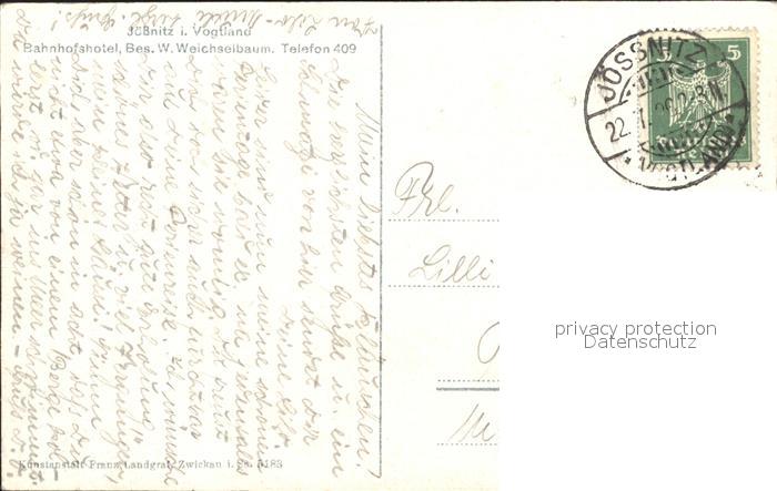 31720891 alte Postkarte Joessnitz Bahnhofshotel postalisch gelaufen Erhaltung siehe scans KatCode: 11110014166000