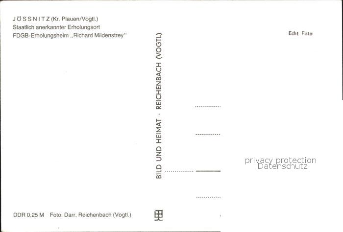 72476447 Joessnitz FDGB Erholungsheim Richard Mildenstrey postalisch nicht gelaufen Erhaltung siehe scans KatCode: 11110014166000