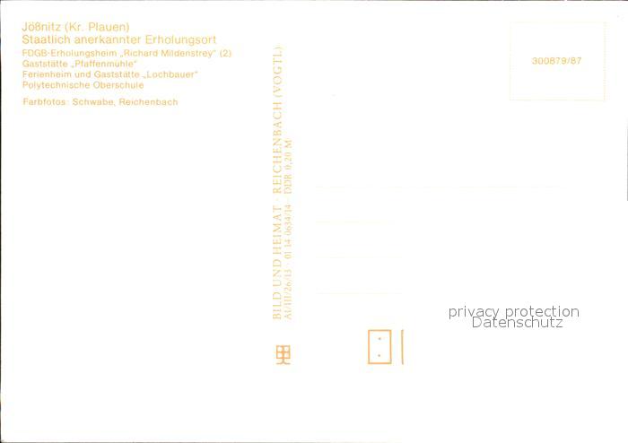 72323974 Joessnitz FDGB Heim richard Mildenstrey Gaststaette Pfaffenmuehle und Lochbauer Polytechn Oberschule postalisch nicht gelaufen Erhaltung siehe scans KatCode: 11110014166000