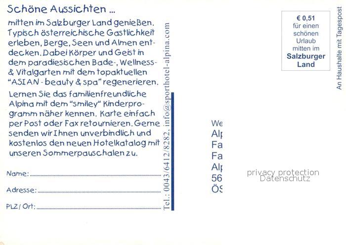73027370 Johann Pongau Salzburg St Hotel Alpina postalisch nicht gelaufen Werbekarte (keine Postkarte) Erhaltung siehe scans [KathaD81] KatCode: 11390