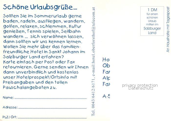 73054468 Johann Pongau Salzburg St Hotel Oberforsthof postalisch nicht gelaufen Werbekarte (keine Postkarte) Erhaltung siehe scans [KathaD81] KatCode: 11390