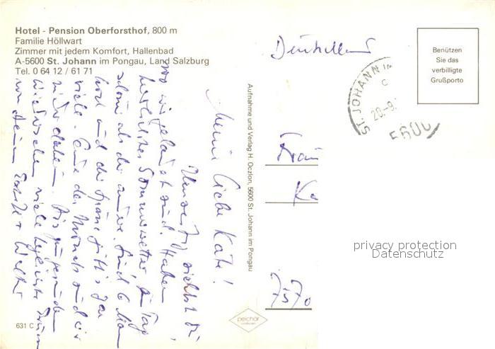 73109345 alte Postkarte Johann Pongau Salzburg St Hotel Pension Oberforsthof postalisch gelaufen Erhaltung siehe scans [KathaD81] KatCode: 11390