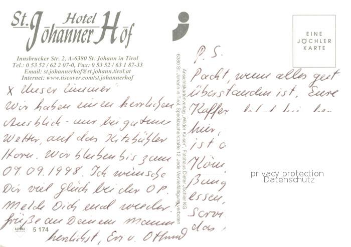 73090951 Johann Tirol St Hotel Johanner Hof postalisch nicht gelaufen Erhaltung siehe scans [KathaD81] KatCode: 11390335070416