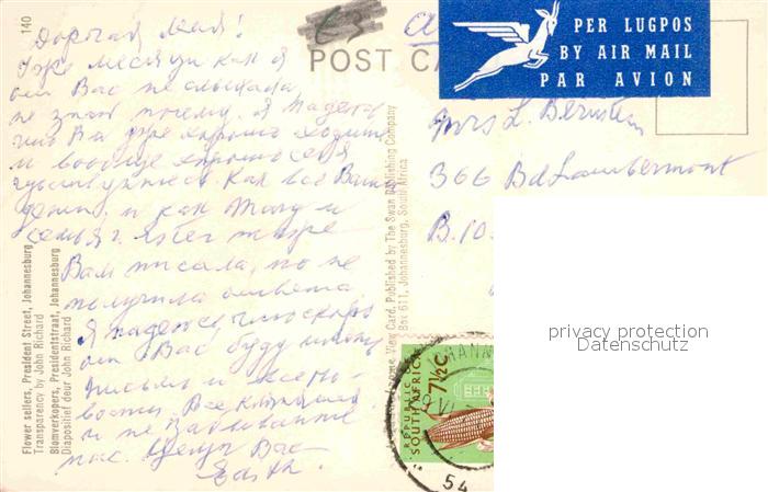 alte Postkarte Johannesburg Gauteng President Street postalisch gelaufen Erhaltung siehe scans [LiesaD40]