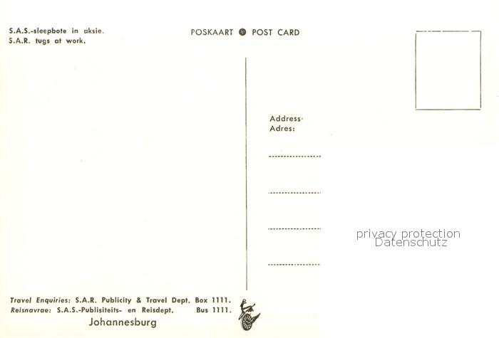 Johannesburg Gauteng S.A.S. tugs at work postalisch nicht gelaufen Erhaltung siehe scans [FriedD77]
