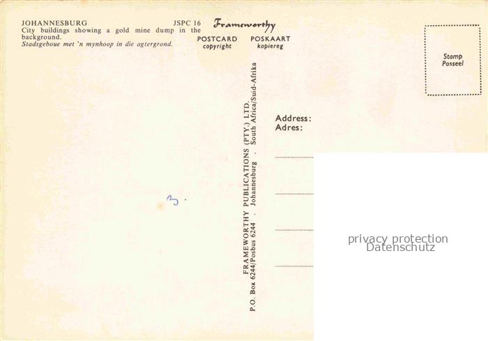 74013907 JOHANNESBURG Gauteng Southafrica RSA City buildings showing a gold mine postalisch nicht gelaufen Erhaltung siehe scans [WerneD78] KatCode: 18460