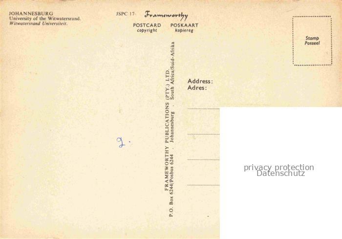 74013912 JOHANNESBURG Gauteng Southafrica RSA University of the Witwatersrand postalisch nicht gelaufen Erhaltung siehe scans [WerneD78] KatCode: 18460