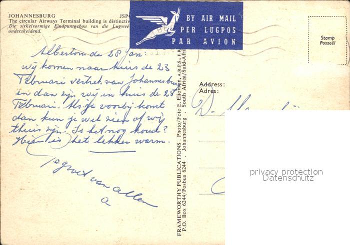 old postcard Johannesburg Gauteng The circular Airways Terminal building postalisch gelaufen Erhaltung siehe scans
