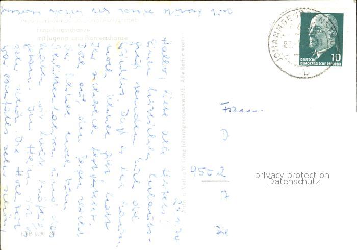 72328748 alte Postkarte Johanngeorgenstadt Erzgebirgsschanze Jugendschanze Pioniersschanze Skispringen Wintersportplatz postalisch gelaufen Erhaltung siehe scans KatCode: 11110014191180