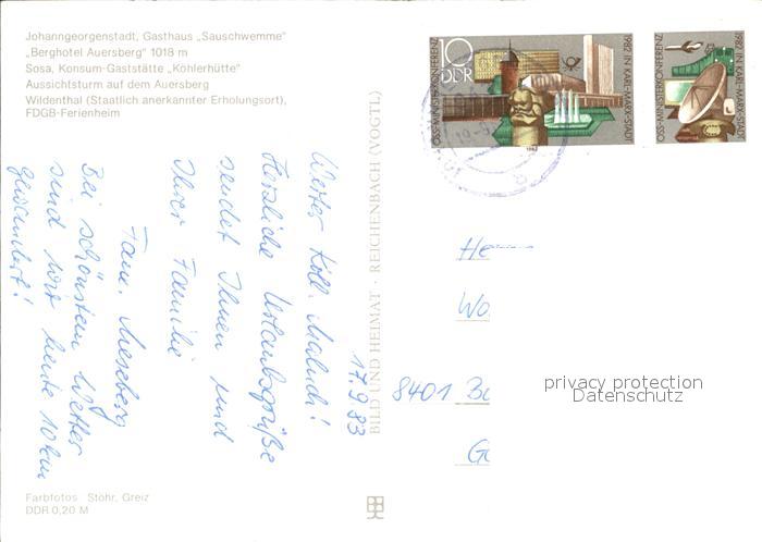 72372696 alte Postkarte Johanngeorgenstadt Gasthaus Sauschwemme Berghotel Auersberg Aussichtsturm postalisch gelaufen Erhaltung siehe scans KatCode: 11110014191180