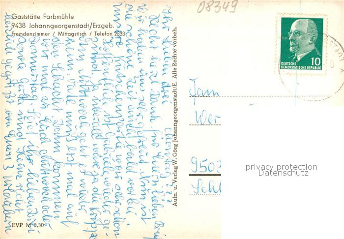 73566359 alte Postkarte Johanngeorgenstadt Gaststaette Farbmuehle im Winter postalisch gelaufen Erhaltung siehe scans [FriedD77] KatCode: 11110014191180