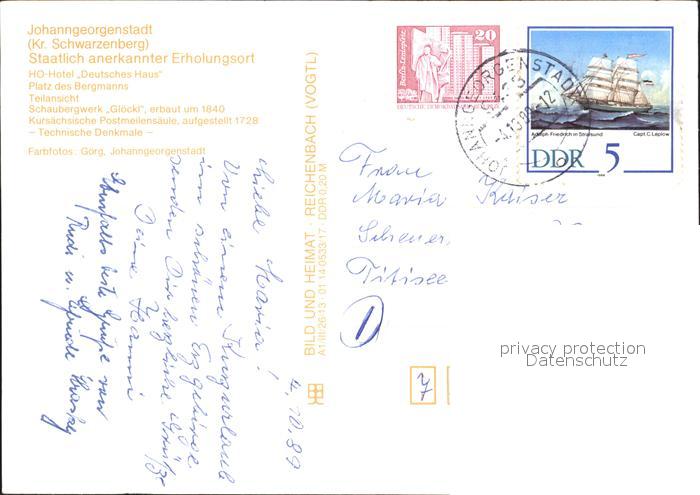 72352206 alte Postkarte Johanngeorgenstadt HO-Hotel Deutsches Haus Platz des Bergmanns Schaubergwerk Gloeckl postalisch gelaufen Erhaltung siehe scans KatCode: 11110014191180