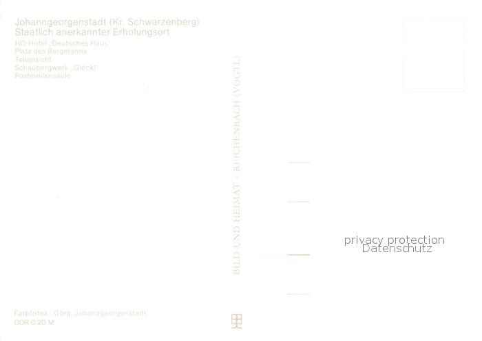 72950545 Johanngeorgenstadt HO Hotel Deutsches Haus Platz des Bergmanns Schaubergwerk Gloeckl Postmeilensaeule postalisch nicht gelaufen Erhaltung siehe scans [WerneD78] KatCode: 11110014191180