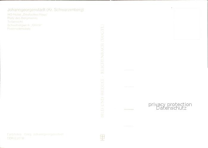 72371999 Johanngeorgenstadt HO Hotel Deutsches Haus Platz des Bergmanns Teilansicht Schaubergwerk Gloeckl Postmeilensaeule postalisch nicht gelaufen Erhaltung siehe scans KatCode: 11110014191180