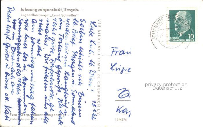 72091373 alte Postkarte Johanngeorgenstadt Jugendherberge Ernst Schneller postalisch gelaufen Erhaltung siehe scans KatCode: 11110014191180