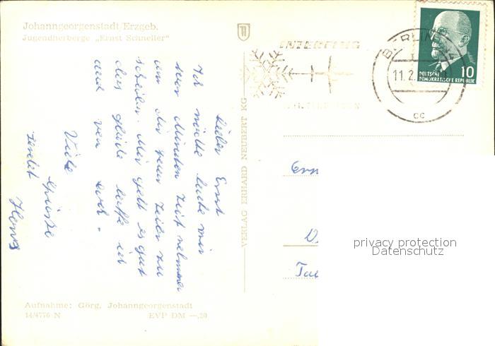 71926281 alte Postkarte Johanngeorgenstadt Jugendherberge Ernst Schneller postalisch gelaufen Erhaltung siehe scans KatCode: 11110014191180