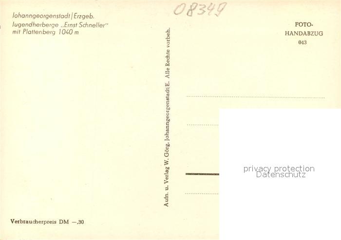 73567128 Johanngeorgenstadt Jugendherberge Ernst Schneller mit Plattenberg Handabzug postalisch nicht gelaufen Erhaltung siehe scans [FriedD77] KatCode: 11110014191180
