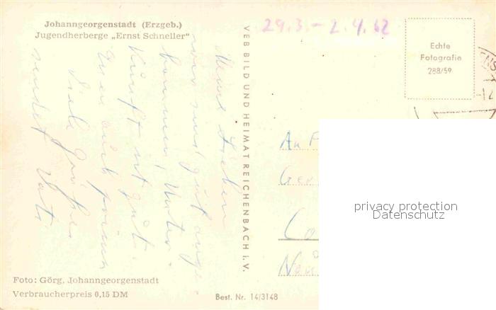 72632740 alte Postkarte Johanngeorgenstadt Jugendherberge Ernst Schneller postalisch gelaufen Erhaltung siehe scans [FriedD77] KatCode: 11110014191180