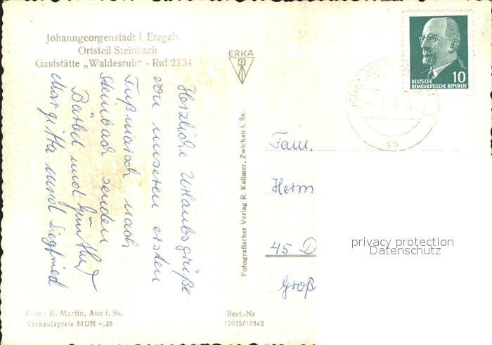 71931032 alte Postkarte Johanngeorgenstadt OT Steinbach Gaststaette Waldesruh postalisch gelaufen Erhaltung siehe scans KatCode: 11110014191180