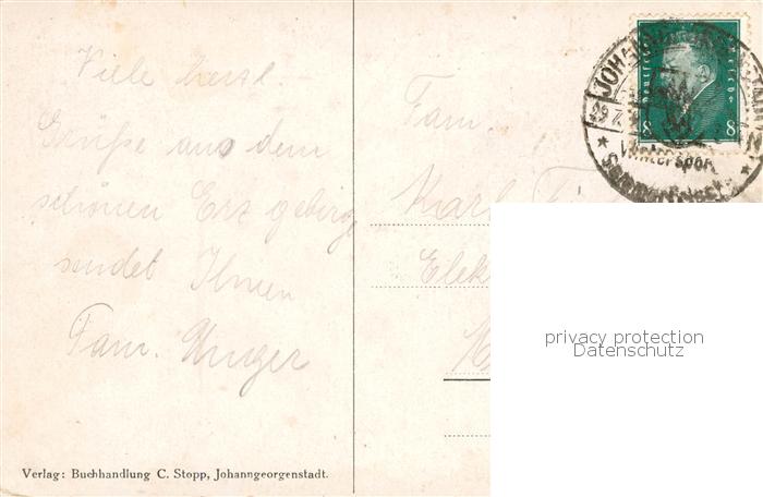 73801512 alte Postkarte Johanngeorgenstadt Panorama mit Bahnlinie nach Carlsbad postalisch gelaufen Erhaltung siehe scans [WerneD78] KatCode: 11110014191180
