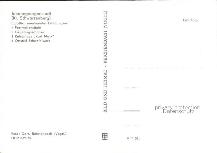 72402288 Johanngeorgenstadt Postmeilensaeule Erzgebirgsschanze Kulturhaus Karl Marx OT Schwefelwerk postalisch nicht gelaufen Erhaltung siehe scans KatCode: 11110014191180