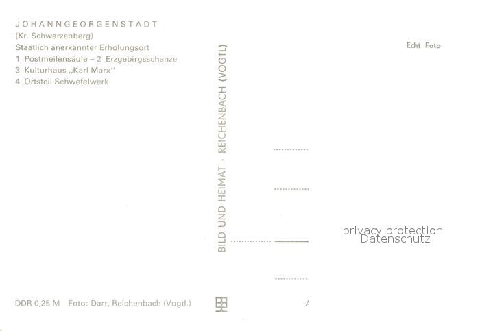 72963846 Johanngeorgenstadt Postmeilensaeule Erzgebirgsschanze Skispringen Kulturhaus Karl Marx OT Schwefelwerk Landschaftspanorama postalisch nicht gelaufen Erhaltung siehe scans [FriedD77] KatCode: 11110014191180