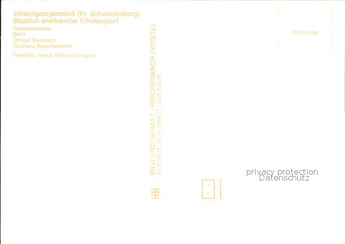 72543051 Johanngeorgenstadt Postmeilensaeule Skilift Ortsteil Steinbach Gasthaus Sauschwemme postalisch nicht gelaufen Erhaltung siehe scans [KathaD75 kv015box] KatCode: 11110014191180
