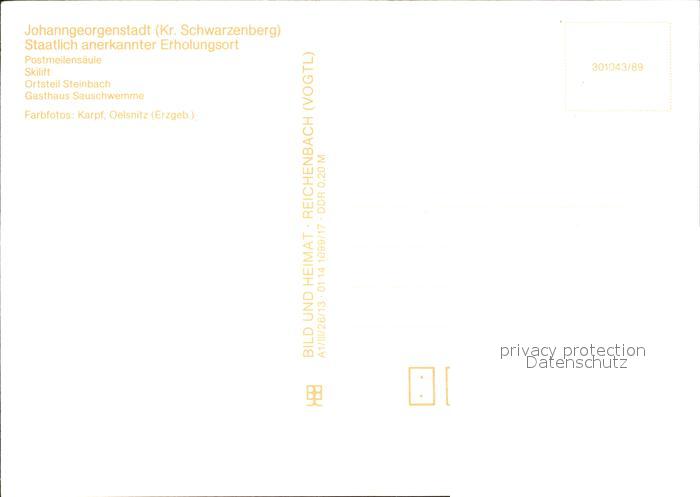 72543090 Johanngeorgenstadt Postmeilensaeule Skilift Steinbach Gasthaus Sauschwemme postalisch nicht gelaufen Erhaltung siehe scans [KathaD75 kv015box] KatCode: 11110014191180