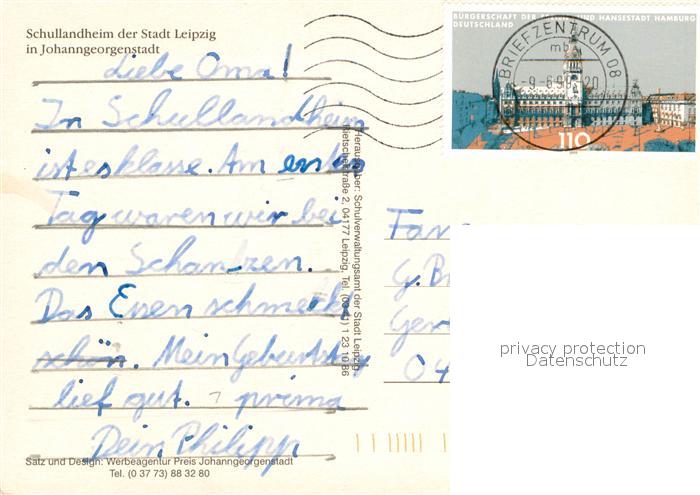 73660593 alte Postkarte Johanngeorgenstadt Schullandheim der Stadt Leipzig Lagerfeuer Badesee Rodeln Aussichtsturm postalisch gelaufen Erhaltung siehe scans [FriedD77] KatCode: 11110014191180