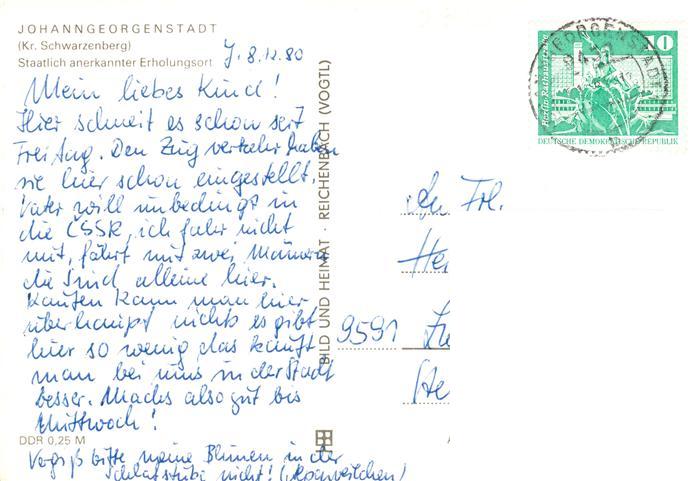 73947362 alte Postkarte Johanngeorgenstadt Schwibbogen Sauschwemme Steinbach Auersberg Erzgebirgsschanze postalisch gelaufen Erhaltung siehe scans [WerneD78] KatCode: 11110014191180