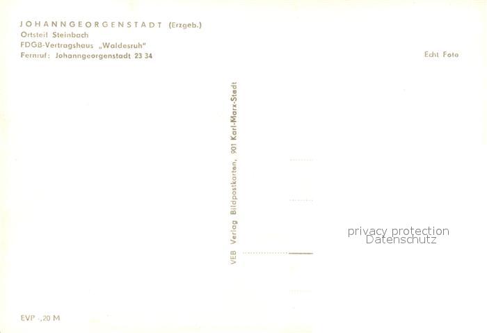 73101454 Johanngeorgenstadt Steinbach FDGB Vertragshaus Waldesruh postalisch nicht gelaufen Erhaltung siehe scans [KathaD81] KatCode: 11110014191180