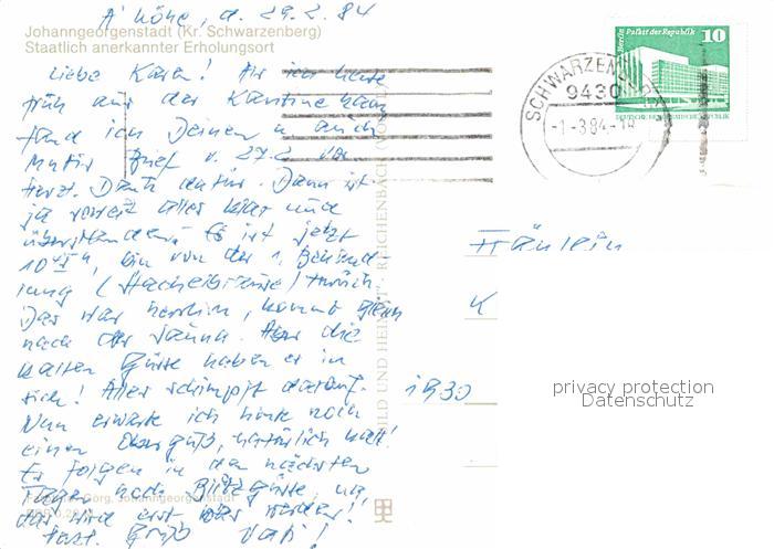 72890608 alte Postkarte Johanngeorgenstadt Teilansicht postalisch gelaufen Erhaltung siehe scans [WerneD78] KatCode: 11110014191180