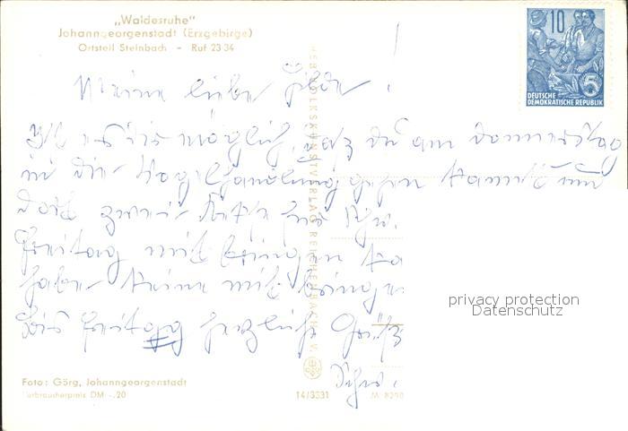 72017664 alte Postkarte Johanngeorgenstadt Waldesruhe OT Steinbach postalisch gelaufen Erhaltung siehe scans KatCode: 11110014191180