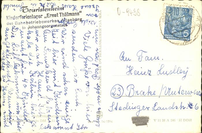 41258946 Johanngeorgenstadt Wegweiser Eibenstocker Str. Ernst Thälmann Str. Touristenheim KatCode 11110014191180