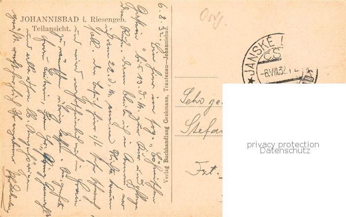 73848797 Johannisbad Janske Lazne Boehmen CZ Teilansicht postalisch gelaufen Erhaltung siehe scans [WerneD78] old postcard Wern Katcode 11520