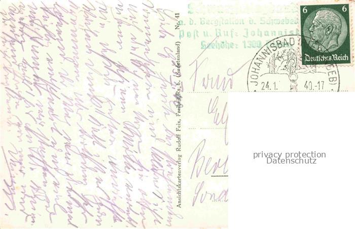 74035596 old postcard Johannisbad Janske Lazne Boehmen Riesengebirge CZ Panorama Sudentenland Blick vom Schwarzenberg gegen Riesengebirge postalisch gelaufen Erhaltung siehe scans [FriedD77] KatCode: 11520