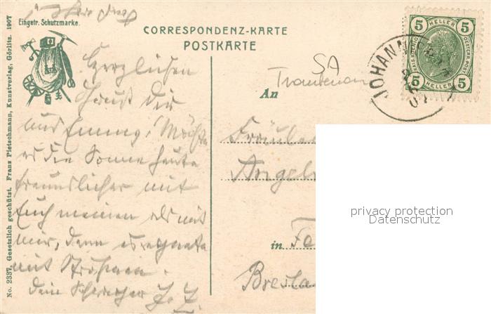 old postcard Johannisbad Riesengebirge Klausegrund postalisch gelaufen Erhaltung siehe scans [WerneD78]