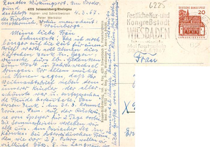 73935868 alte Postkarte Johannisberg Rheingau Fliegeraufnahme postalisch gelaufen Erhaltung siehe scans [WerneD78] KatCode: 11110006439004